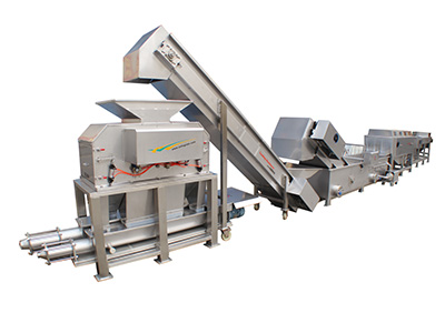 菠萝果汁加工生产线的流程设计围绕 “新鲜” 与 “有序” 展开。首先是原料预处理环节,新鲜菠萝经过挑选、清洗后,去除表皮和果芯等不可食用部分。这一步骤看似简单,却直接影响后续果汁的口感,生产线会通过专门设备精准完成筛选,确保只有成熟度适宜、无损伤的菠萝进入下一道工序。
